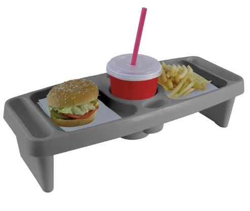 - Uniquely designed to rest securely on the lap to hold beverages, food & more