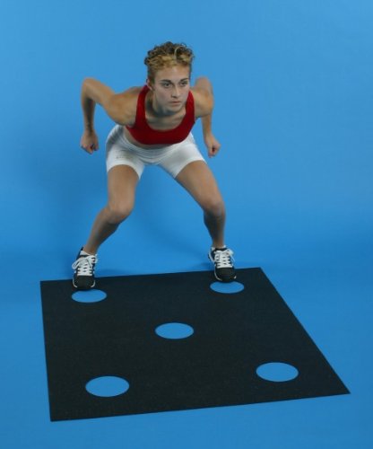 Dot Drill Mat is perfect for warm up exercises and plyometric training. Easier than other mats to carry since it is light weight. Storage is also easy since the mat rolls up so conveniently. High quality durable material will not tear or rip with use. Dimensions are 3' by 4' with five 6" diameter holes.